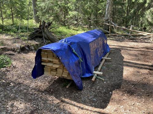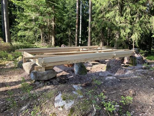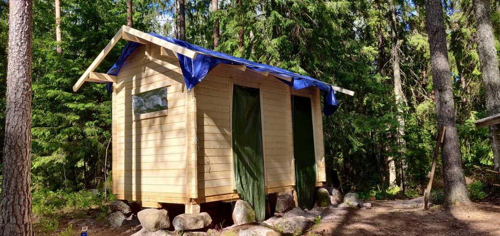 Uusi varasto-käymälärakennus pystytettiin talkoissa 7.6. ja 8.6.2022 ja seuraavalla viikolla (13.-17.6.) harjakorkeuteen. Kattotyöt tehtiin 29.6.-30.6.2022 ja niitä jatkettiin vielä elokuussa. Rakennuksen viimeistelytyöt on tehty touko-kesäkuussa vuonna 2023.
